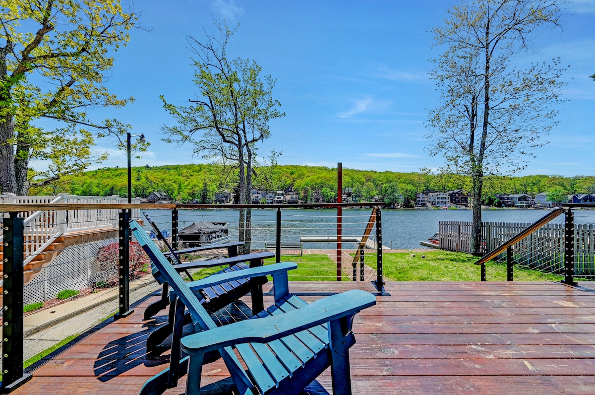 Penn Lake Park lakefront home with breathtaking views and all of the amenities! 5 Bed 2 1/2 Bath, 3000sq ft , sleeps 12+ comfortably. Newly remodeled master bedroom and bath, large deck with grill, 2 kayaks, personal sandy shore, dock and fire pit, ping pong table, TV's with cable/hbo/netflix in every room, playstation 4 for the kids - always updating! Great skiing at 2 resorts within 15 minutes, swimming, fishing, tennis, basketball, hiking, and so much more.