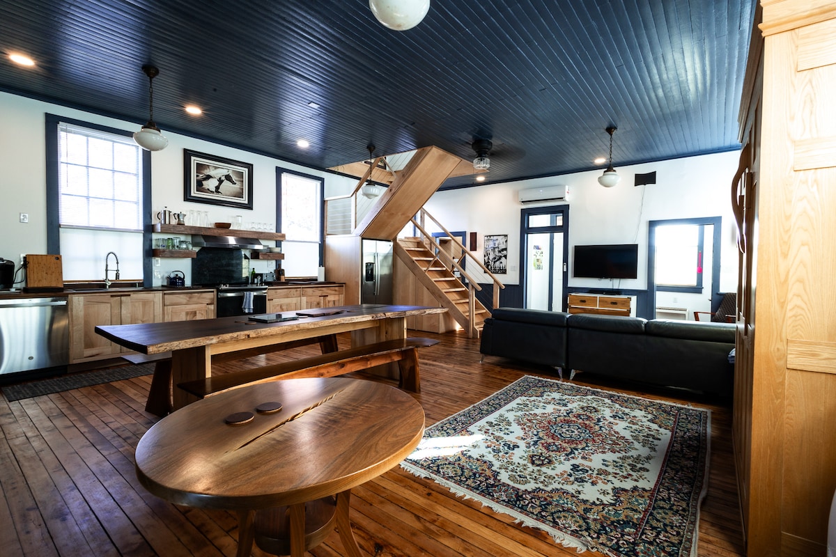 Enjoy staying in a completely updated, historic one room schoolhouse less than two miles from Ricketts Glen State park. Upstairs are two private bedrooms, one with a king bed and one with a queen bed. Downstairs features an open space with a full kitchen, queen murphy bed, living space, full bathroom, mudroom, and chalkboard.