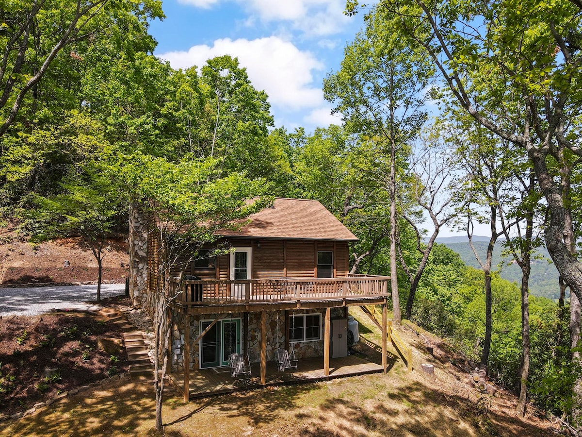 A peaceful and private cabin in the Blue Ridge Mountains, with INCREDIBLE views. Watch both the sunrise and sunset from the massive back porch, stargaze from the HOT TUB, relax by the FIRE PIT, or lay in the master loft bedroom with huge windows overlooking the mountains. Bring your pups to enjoy the private yard! The GATED community offers miles private hiking trails, waterfalls, & a fully stocked community fishing pond! Short drive to Boone, Blowing Rock, West Jefferson, Blue Ridge Pkwy.