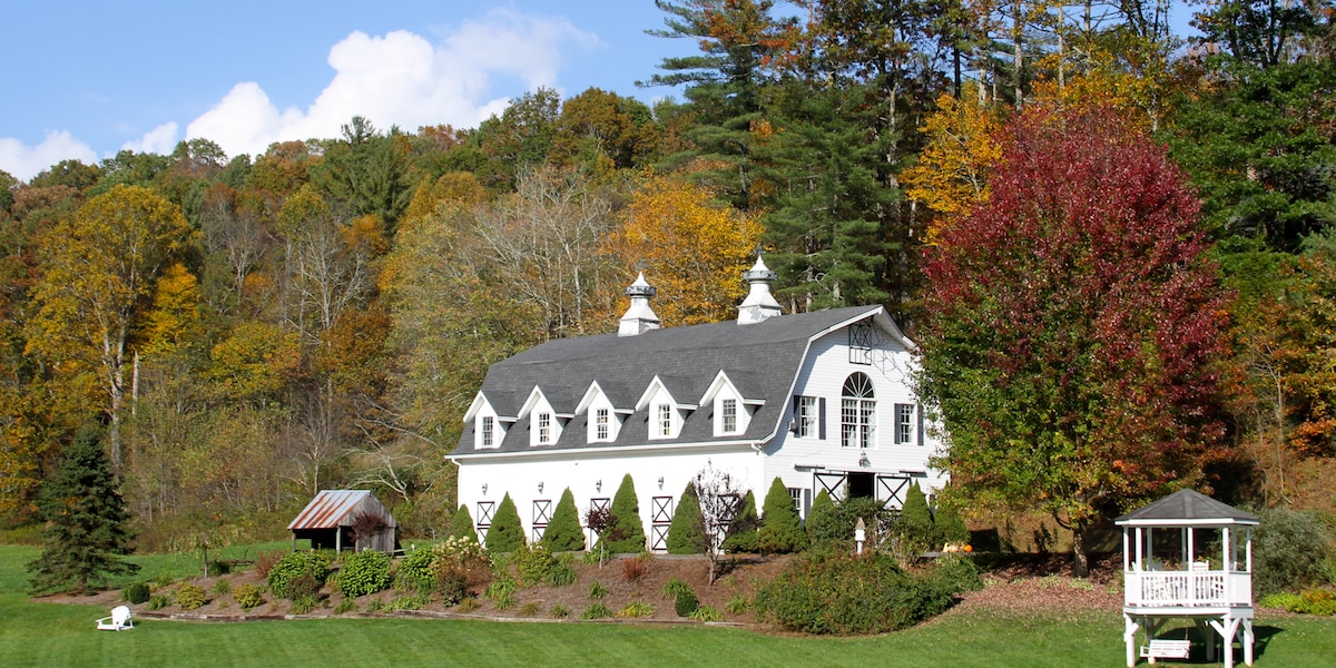 Located 20 mins from Boone & West Jefferson, the French Country Loft boasts beautiful views of the New River’s South Fork from a self-catering, open concept suite on top of a refurbished 1880's dairy barn. This amazing location allows fishermen, paddlers and tubers entrance to the New River, bikers & runners access to Railroad Grade Road, hikers entry to the woods behind "The Escape." Book lovers and loungers will find serene grounds full of relaxing spots worlds away from the stresses of life.