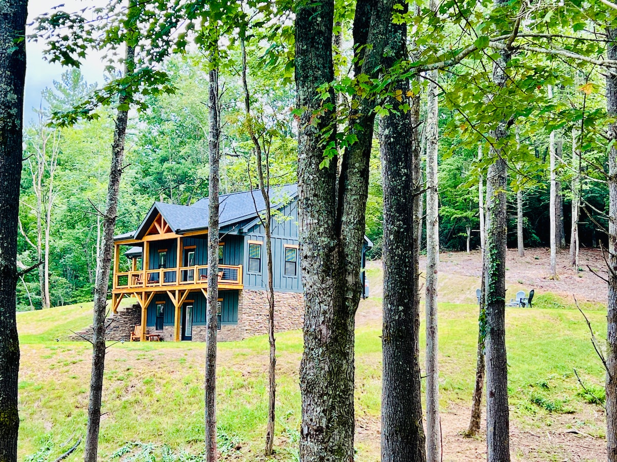 In the middle of the woods. Far from the sounds of civilization and light pollution, in the beautiful blue ridge mountains. 35 minutes from ASU. One master bedroom and one loft bedroom with 2 full baths. Outside fire pit and indoor wood stove (we provide firewood 🪵) Central A/C (window unit supplements the central a/c in the upstairs portion of the house) and gas heat. Large covered porches on the front and back of the house, back porch is screened in with outdoor dining area.