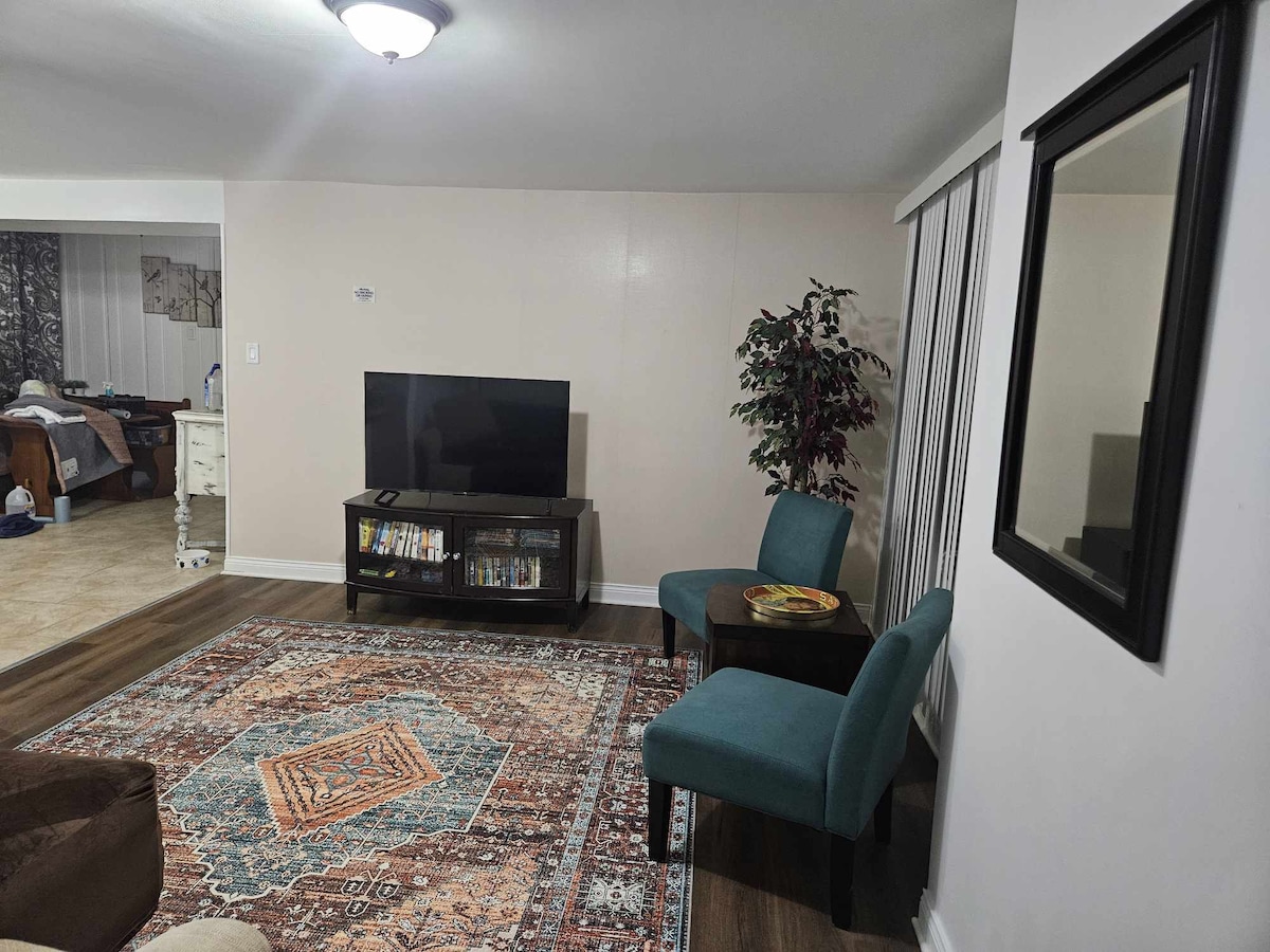 Nestled in a cul-de-sac, this open concept 2 bedroom 2 bath townhome! There is a fireplace, dining room and convenient patio with sliding glass doors that lead to the outdoor patio The home is newly remodeled with wood floors and new stainless steel appliances in the kitchen. Each bedroom has a large smart TV for your enjoyment! The living room has a 65 in smart TV and there is also an under the counter TV in the kitchen. We also have a queen size electric airbed with extra pillows & linens.