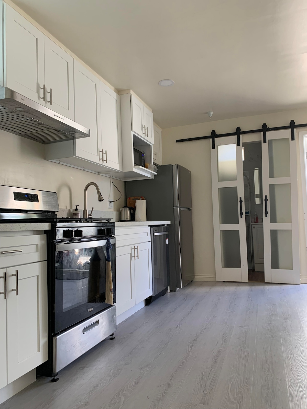 Step through the carriage doors and into an open interior with polished concrete floors, plus a kitchen with navy cabinets and stone countertops. The bedroom comes with barn door, bamboo floors, and 55" HDTV, while a verdant garden awaits outside. Enter the guest house thru carriage doors to a first floor open living space with kitchen, sofa and 60'' HD flatscreen TV. Polished concrete floors and stone countertops. Exit to open, outdoor staircase leading to an upper bedroom with Cal-King Bed, bamboo floors, dresser, 55'' HD TV, comfortable bathroom with walk-in shower and vanity. Wifi / Cable / AC & Heating units in each room. Design is a mix of beach cottage with contemporary accents. 2 Blocks to beautiful Ocean Avenue to watch gorgeous California sunsets or walk to beach. 2 Blocks to Montana Avenue shopping and cafes. Close to Promenade and Metrolink. Unbeatable Location ! Our place is good for couples, solo adventurers, and business travelers. The bungalow is a separate guesthouse but owners are present on the property in the main house. Outside table with a bench and chairs are perfectly located for morning coffee lunch or evening cocktail. We live in the front house so feel free to reach out to us with any questions and/or concerns regarding your stay. Leave the car behind - the beach, restaurants, cafes, and shops, are all an easy walk away. Rent a bike nearby to explore further. Watch the sunset over the water from Ocean Avenue, 2 blocks away, while Metrolink and Promenade are also close. Rent a Hulu Bike for your stay. “On May 12, 2015, the Santa Monica City Council adopted the Home-Sharing Ordinance reiterating its ban on the rental of entire units as vacation rentals. The Home-Sharing Ordinance also legalized the short term rental of a portion of a person’s home when the host lives on-site throughout the visitor’s stay and when the host obtains a business license. Hosts are also required to collect and remit Transient Occupancy Tax (TOT) if not collected and remitted by the hosting platform.” Our license #221557 is listed with the City of Santa Monica