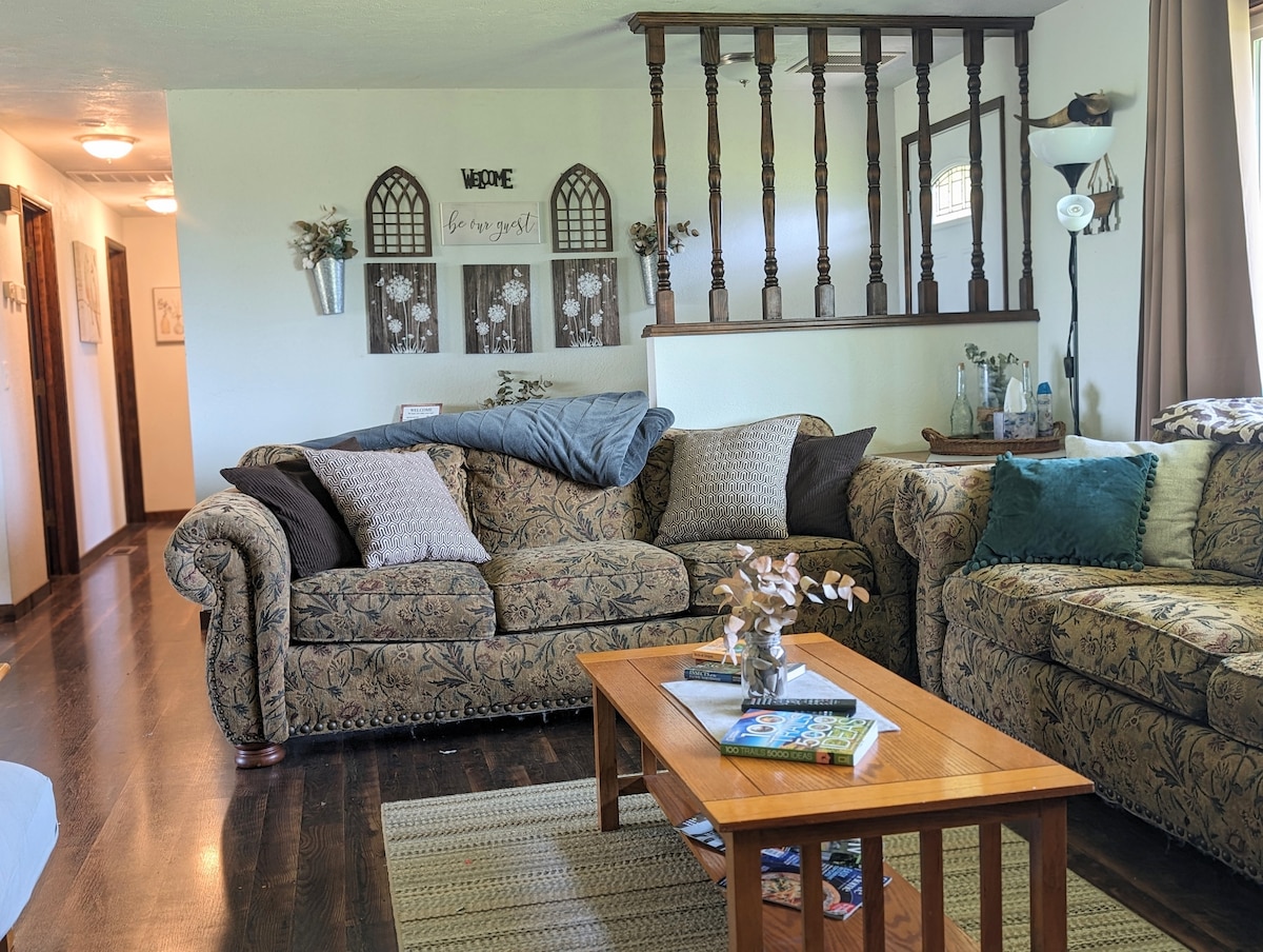 This spacious 1000 Sq ft guest suite with private bath has flexible furnishings that can be set up to create a cozy movie/popcorn night or open up for morning yoga. Hiking trails leave from your door into an expansive park. We are an urban farm garden and have chickens and goats. Visit on Tuesday evenings (May - Oct) to enjoy a local farmers market on the property. Absolutely no smoking of any kind. We respect diversity and inclusion. Ask us about booking garden tours or campfires.