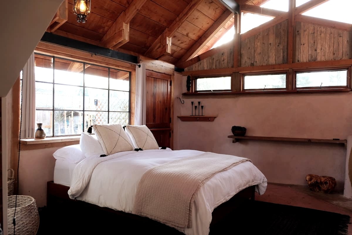 The Cob House is a one-of-a-kind, hand-built retreat crafted from sand, clay, and straw, just like they did centuries ago. This cozy, retreat offers a peaceful escape into nature with all the comfort & privacy you need to unwind. Inside, with a queen-sized bed, a AC/Heater and coffee & tea & snacks. The private deck is clothing-optional. The hot tub to soak under the stars. Between each stay, the space is saged to refresh the energy and welcome you anew. Come as you are. Leave feeling renewed.