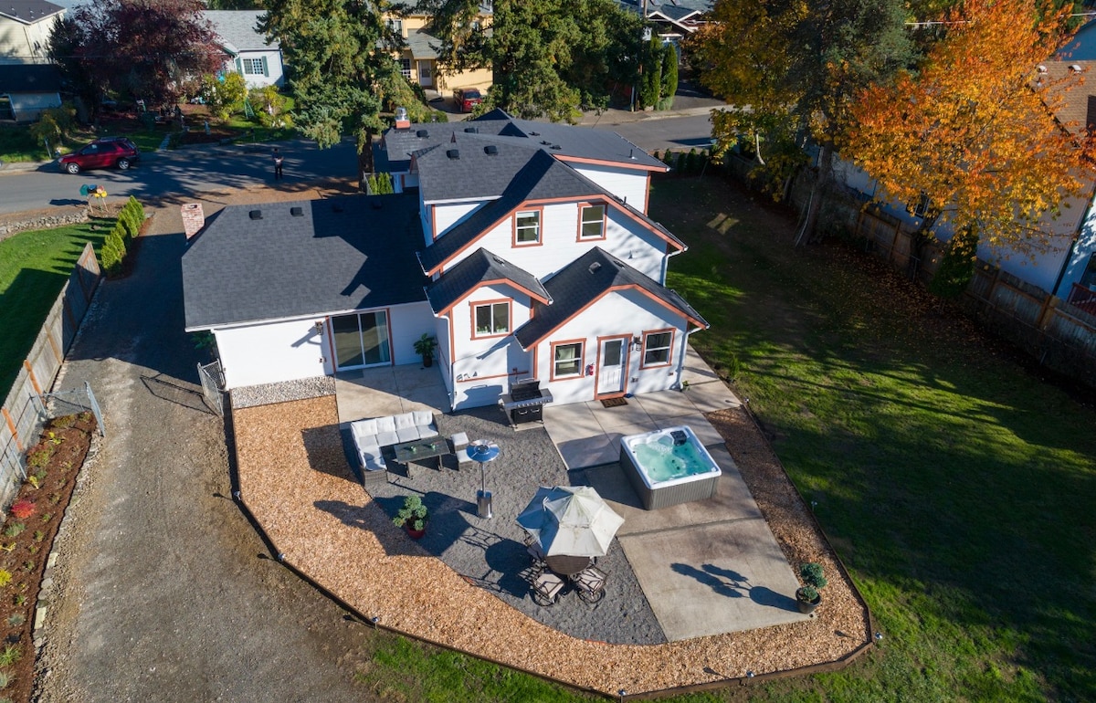 Enjoy the hot tub & sauna for relaxation! The Tiny Home is privately tucked in a garden oasis, in a quiet residential neighborhood. Only 13 blocks to downtown Newberg 's wine boutiques & restaurants, 6 blocks to George Fox University, 45 min. from PDX Airport. Spacious with 192 sq. feet of modern comfort. Complimentary specialty cheese & oatmeal cups for breakfast. Nice bikes to tour Newberg & local wine boutiques. *Two night minimum stay. *Add a Reiki or Acasma Energy session for relaxation.