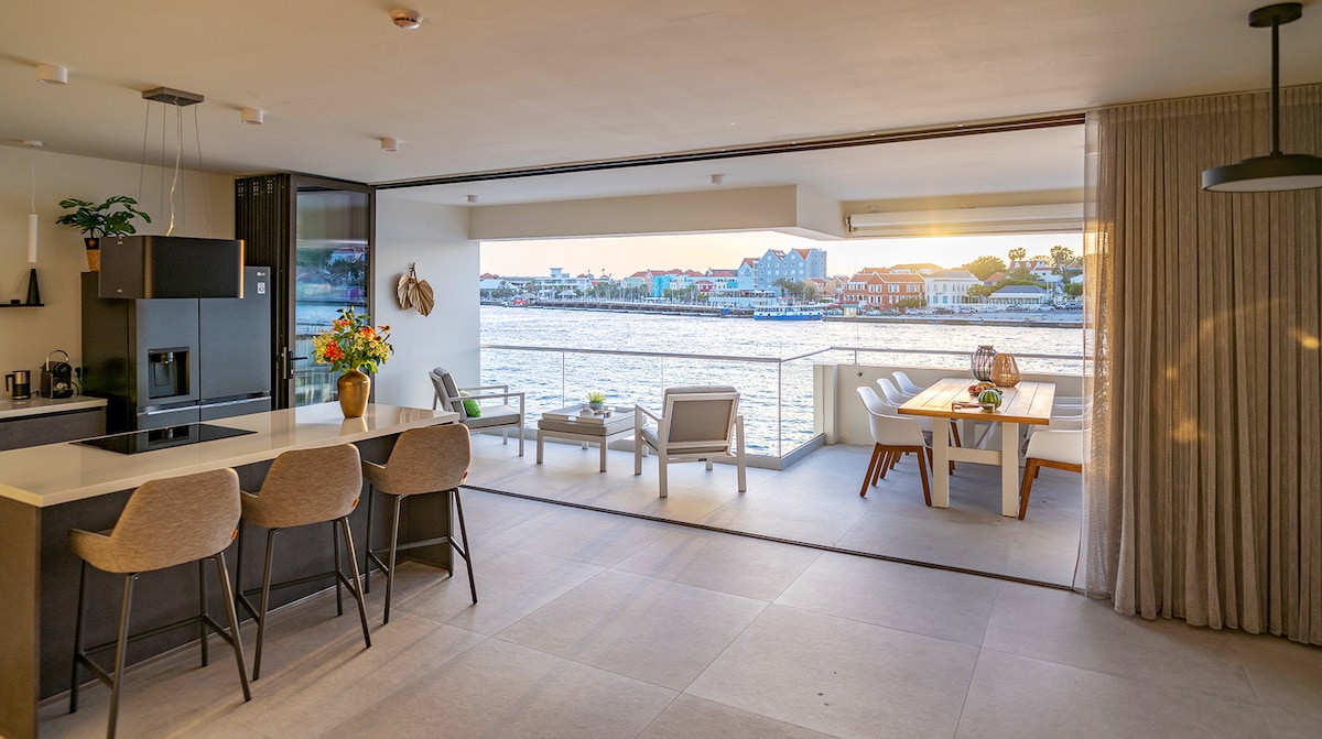 Indulge in luxury at The Aurum Marina, a stunning waterfront apartment in Willemstad, Curaçao. This exclusive apartment boasts breathtaking sea views, modern amenities, and a prime location. Enjoy the spacious living area, fully equipped kitchen, and elegant finishes. Relax on your private balcony and soak in the beauty of the Caribbean. Perfect for those seeking comfort, privacy, and sophistication in a premium waterfront setting.