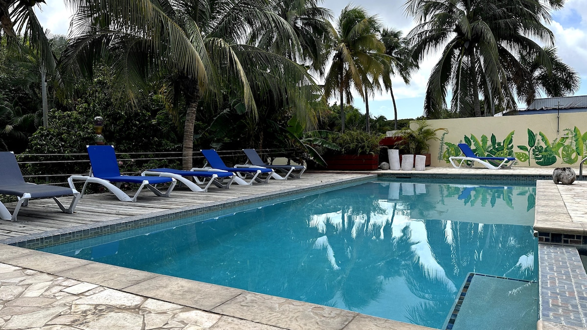 This stylish, fully equipped, air-conditioned apartment features a private pool along with a tropical frontgarden that is entirely for your exclusive use during your stay. It's just a 5-10 minute drive from popular beach clubs like Jan Thiel and Mambo, with supermarkets, shopping malls, and excellent restaurants nearby. The terrace provides a relaxing, beachy vibe—perfect for enjoying stunning sunsets. This apartment is your ideal getaway for a memorable vacation.