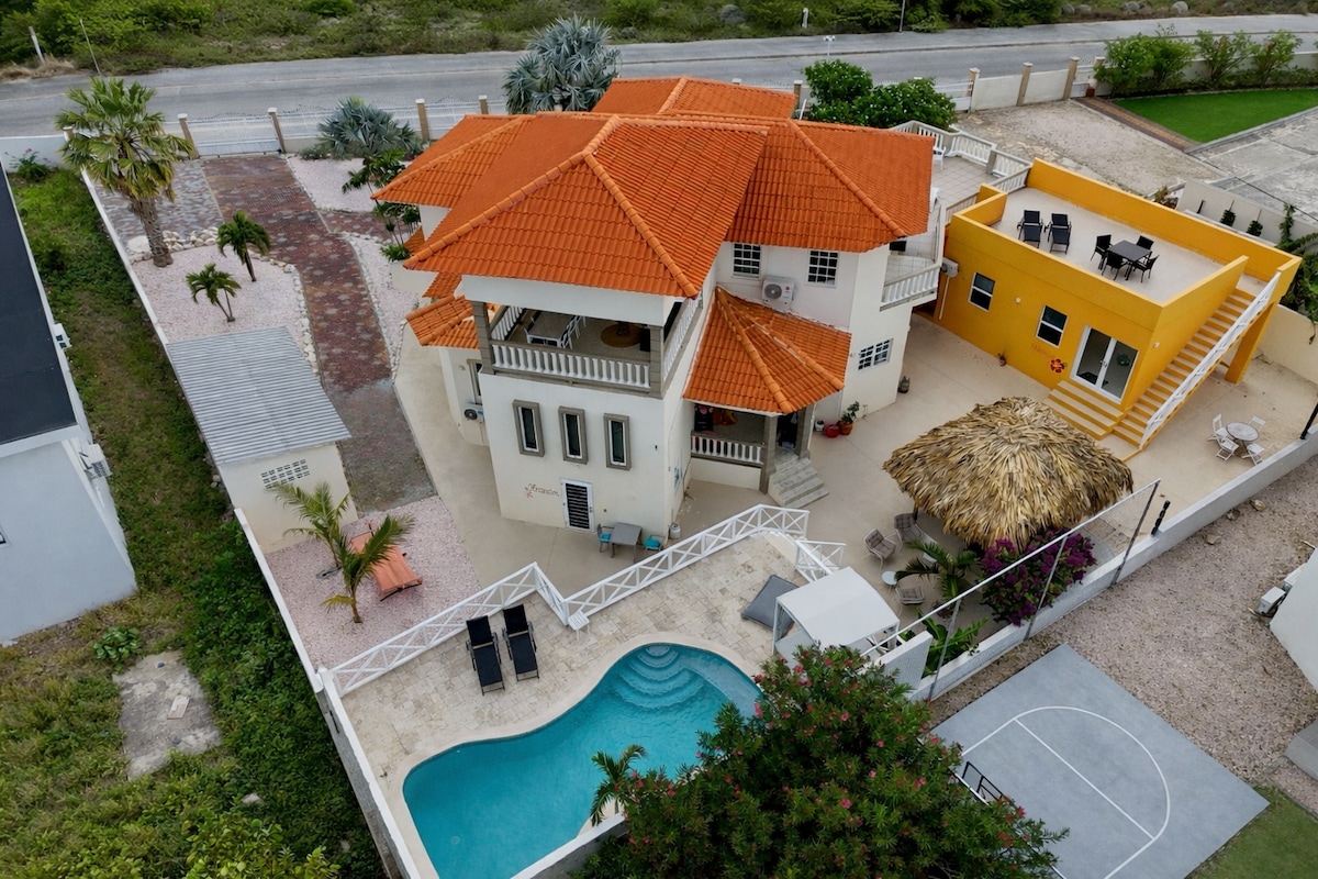 Dit appartement is op de 1e etage en heeft een groot balkon met een mooi uitzicht op de blauwe zee. Het strand is op loopafstand. De indeling is perfect om alleen, met z'n tweeën of als groep of gezineen gezellige tijd te hebben. De ligging is zeer centraal op het eiland en dichtbij Mambo Beach. Ook punda, restaurants en de supermarkt zijn dichtbij. Er is een 360 graden uitzicht met volop wind. Je hebt voldoende privacy en het is veilig. Laat het ons gerust weten als u een auto nodig heeft.