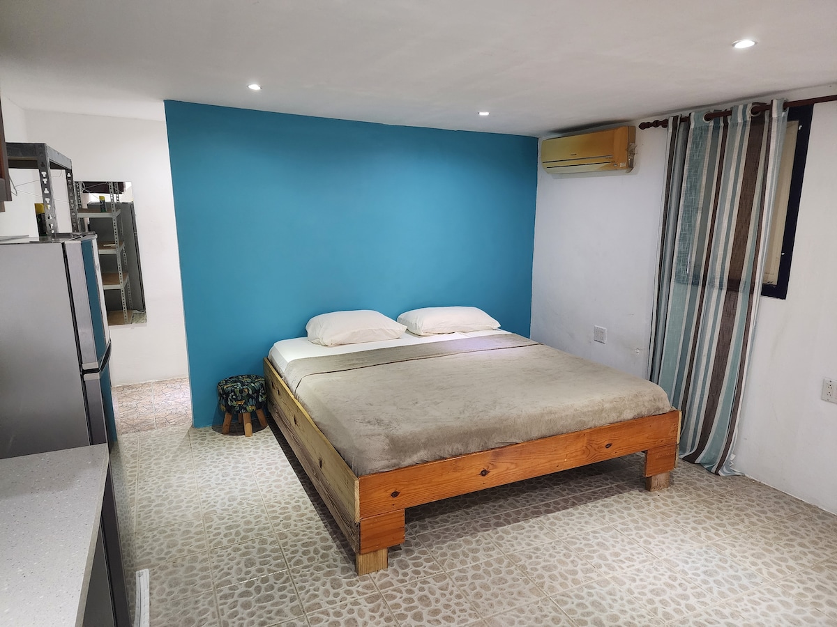 Santa Helena Studio, a cozy and centrally located studio next to a family home in Santa Helena, Curaçao. Max 2 guests. Air-conditioned, kitchenette, free WiFi, and parking. Just a few minutes' drive from downtown Willemstad and Otrobanda, Sambil Shopping Mall, and Curaçao Medical Center. A bus stop, bakery, and minimarkets are within walking distance.