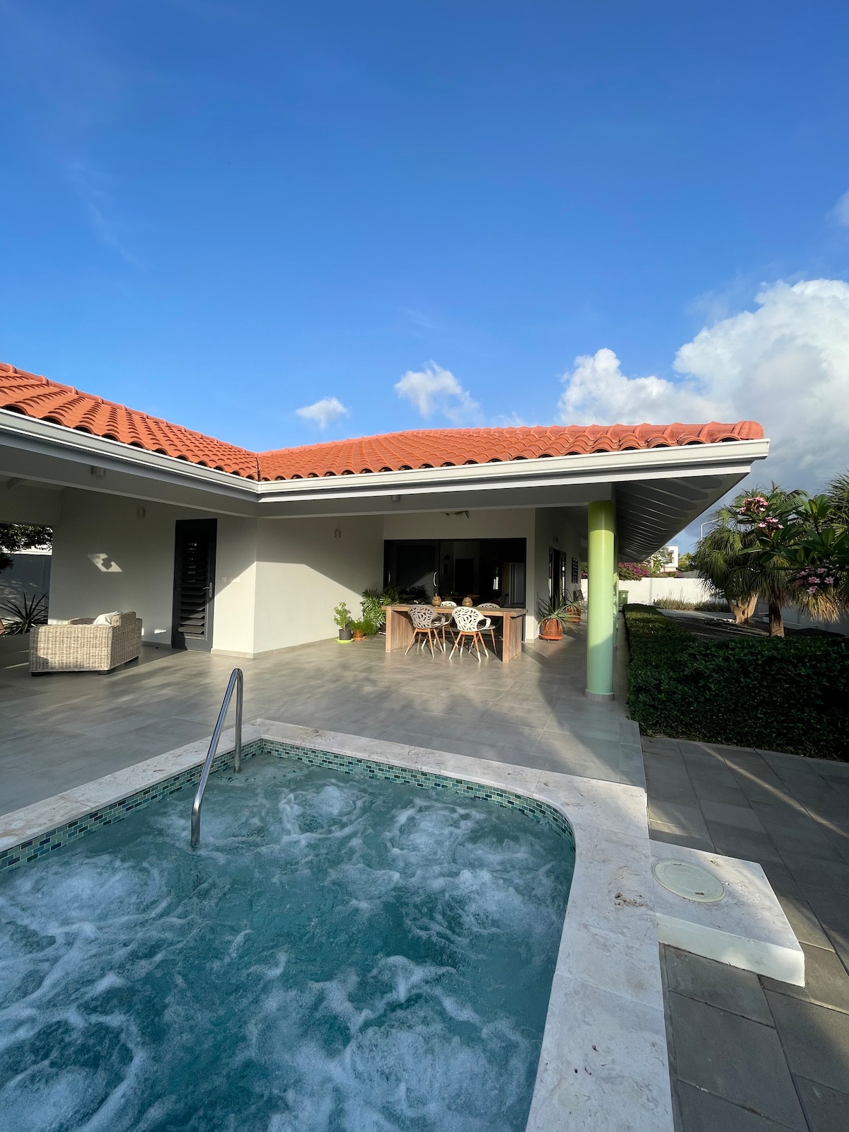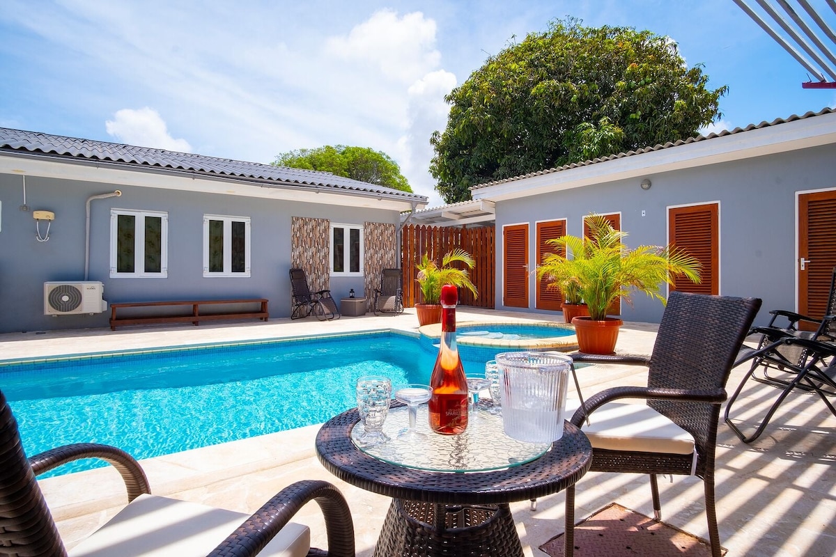 Geniet van een heerlijke vakantie in onze ruime villa op Curaçao. De villa beschikt over een eigen zwembad met geïntegreerd jacuzzi-/spa-zitgedeelte, tropische tuin, 4 slaapkamers met airco en diverse fijne zitplekken buiten. Gelegen op een afgesloten terrein in een rustige woonwijk, op slechts enkele minuten rijden van Jan Thiel Beach, restaurants en supermarkten. Wifi, gratis parkeren en eenvoudig inchecken zorgen voor een zorgeloos verblijf.
