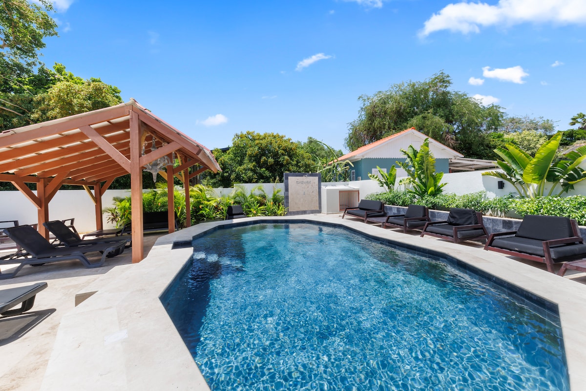 Welcome to Thuishaven! A unique and artsy mini resort in the center of the island. Close to the most beautiful beaches in the west, and close to the vibrant city center. We offer a beautifully designed room with en-suite bathroom and entrance to our spectacular garden with large pool. Note that this specific listing doesn't offer a full kitchen. Please also note that you will need a car if you want to stay in our little paradise (and if you really want to enjoy the island)
