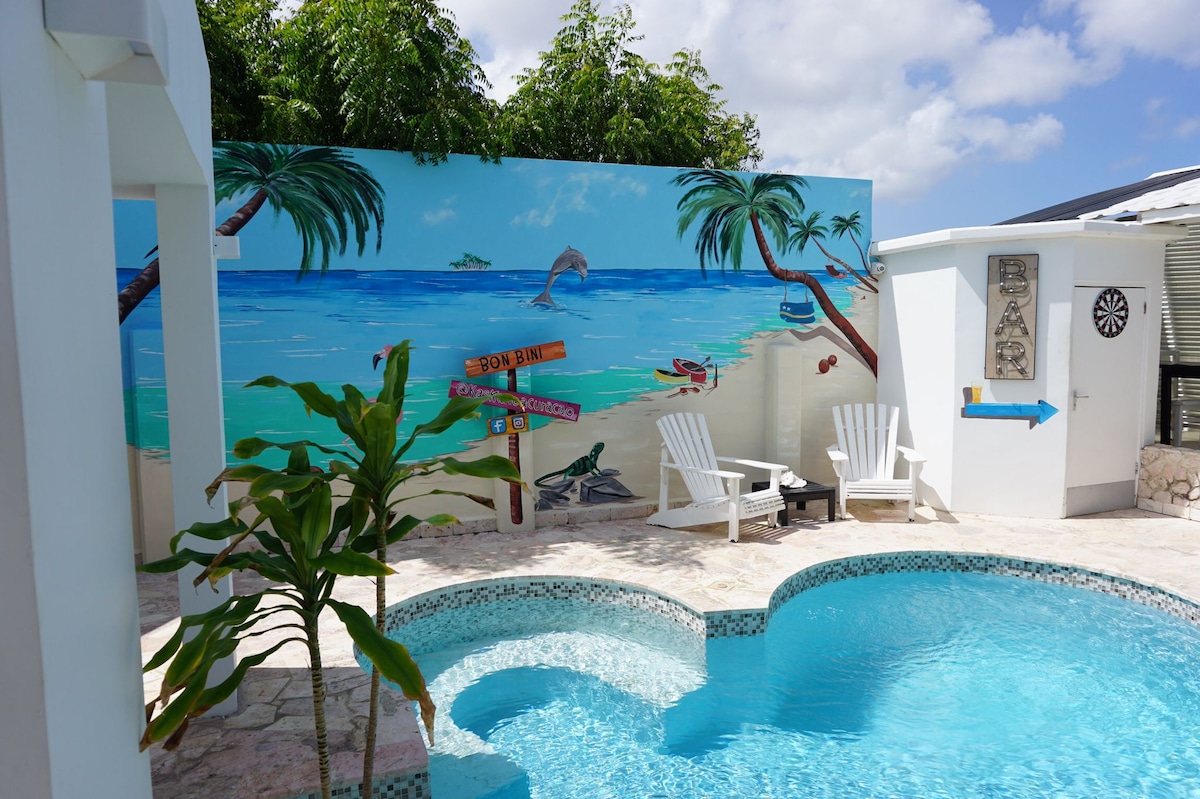 Dreaming of Curaçao? Live the local experience!Book our cozy 1-bedroom apartment for comfort and convenience! We're centrally located near the airport, shopping, and the beautiful sea. With Top Restaurants within 5 mins. Enjoy a refreshing pool and tropical vibes. Peaceful and secured neighborhood. Benefit from free on-site parking and AC for a cool stay. Equipped with Fast Wifi, smart Tv’s and a nice kitchen so you can cook your own meals. Located 9 minutes away from the beach & downtown.