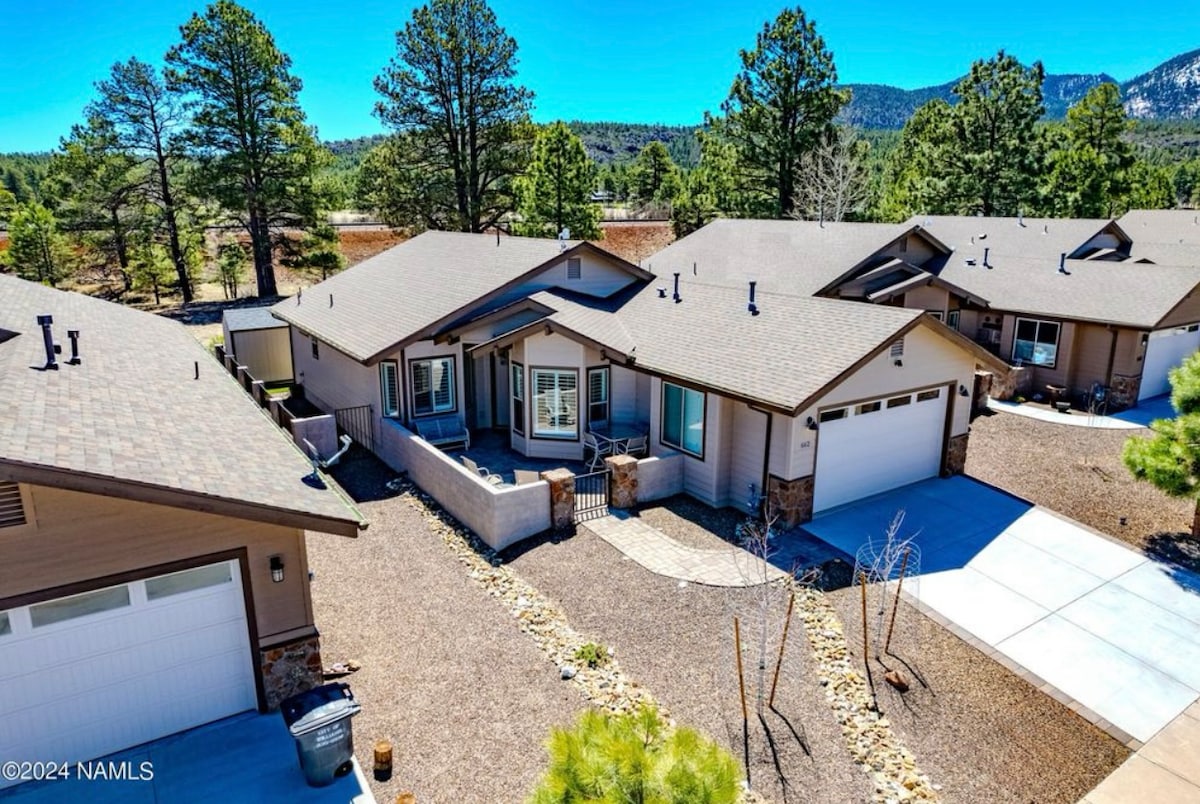 Enjoy this peaceful retreat with views of a mature forest and the San Francisco Peaks! Deer and elk graze across the ravine outside your bedroom window, and hummingbirds drink nectar from the abundant wildflowers. This is a really special spot! Still, our home sits inside Flagstaff, with all its amenities: cafes, roasteries, beer gardens, and breweries. Snow Bowl, Sedona, and the GC are not too far from us, along with many other day trip hikes and destinations. We love this place! Come join us!