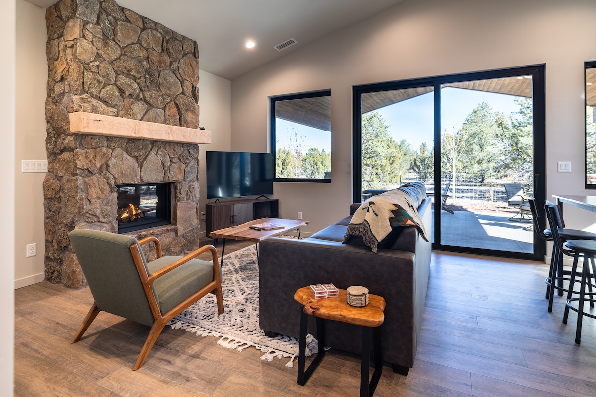 Have fun with the whole family at this stylish new build home 3 miles from Historic Old Town Williams & Route 66. Modern 3 bedroom, 2 bath home, with dedicated workspace & AMAZING game room! Perfect getaways for families, couples, or girl/guy weekends. Fully decked out with amenities including full kitchen, gas fireplace, spacious dining/living area. Dual 50" tv gaming station area, Golden Tee arcade, shuffleboard, foosball, dartboard, bar. HUGE back yard & deck, grill, lakeview, seating areas!