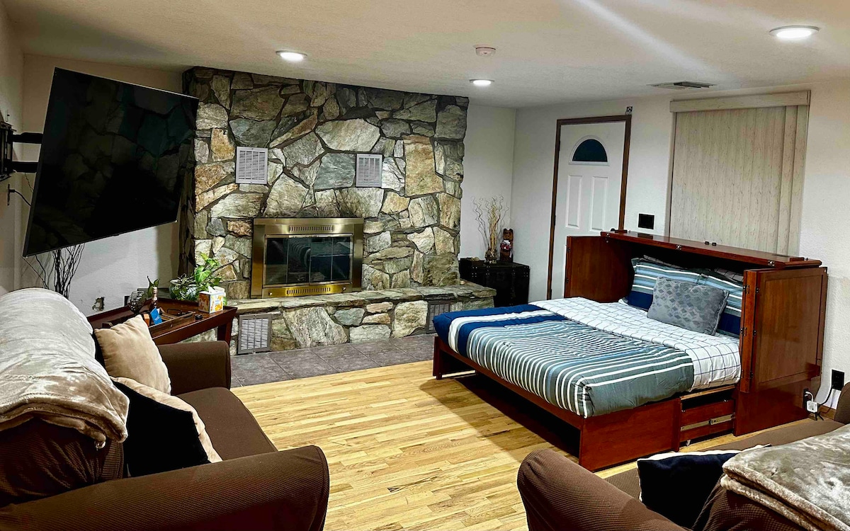 Cozy Flagstaff Forest Retreat – Gym & Sauna Relax among the pines in this peaceful downstairs duplex for up to 4 guests, just 5 minutes from downtown. Enjoy your private space with kitchen and bath, plus gym and infrared sauna access (by appointment). Walk to Buffalo Park and explore nearby Snowbowl or the Grand Canyon. Perfect to rest, recharge, and connect with nature.