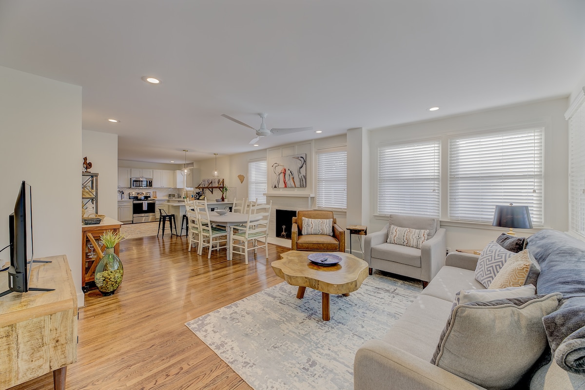 Perfectly situated in an upscale, quiet, tree-lined neighborhood, this hip 1940 classic renovated home is super-close to many of Columbia's classiest cafes, boutiques, USC campus, Fort Jackson, USC Law Center and other major attractions. It strikes just the right balance of location, peacefulness, style and comfort. Here, you can hang on the front porch to serenading birds and nearby church chimes or relax indoors with the 65" HDTV Surroundsound system and super-fast WiFi!