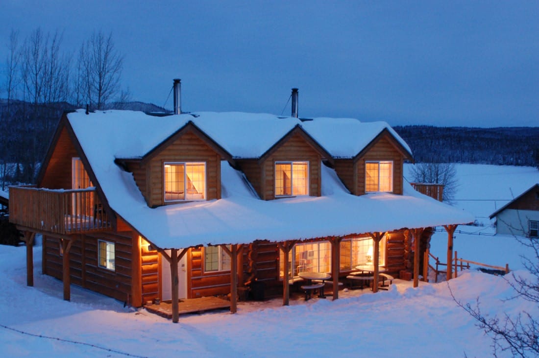 拉哈切湖(Lac La Hache)上的壮观原木屋