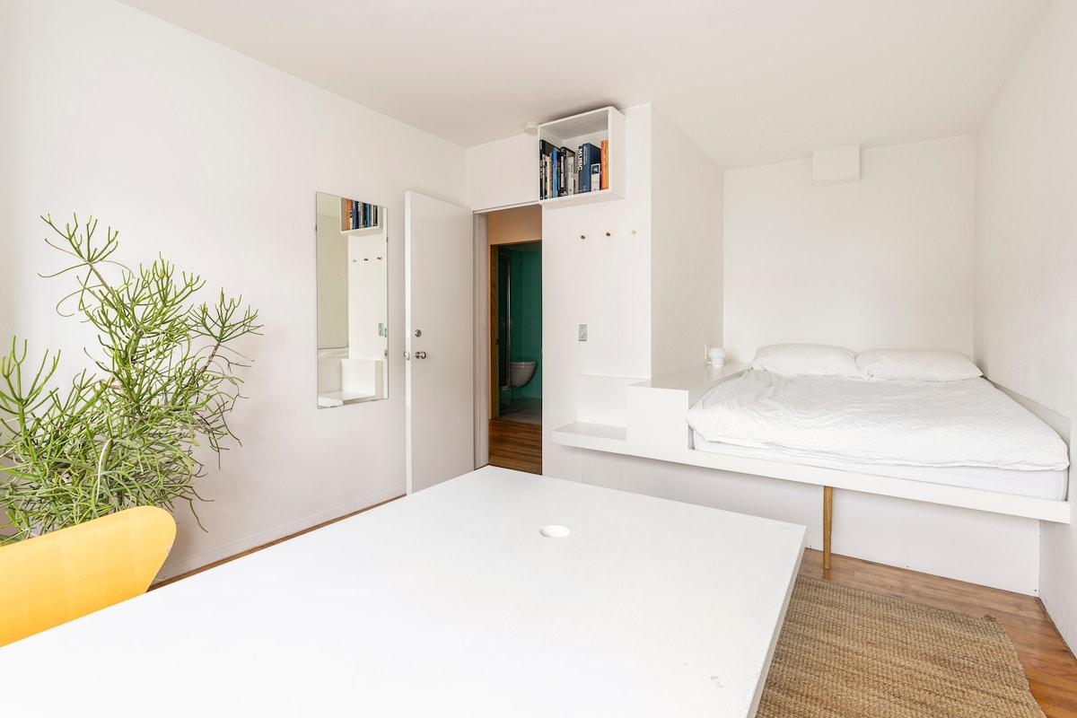 This is not a 5-star hotel, but it's a lovely, unique, and spacious 2-bedroom apartment filled with daylight. It has a large living room and 2 bathrooms, providing plenty of space, small workstations, good energy, plants, and light. There are no places like this in the area! Additionally, there's a big table with 6 chairs in the living room, a kitchen, a comfy couch, a projector, and everything else you may need to feel good!