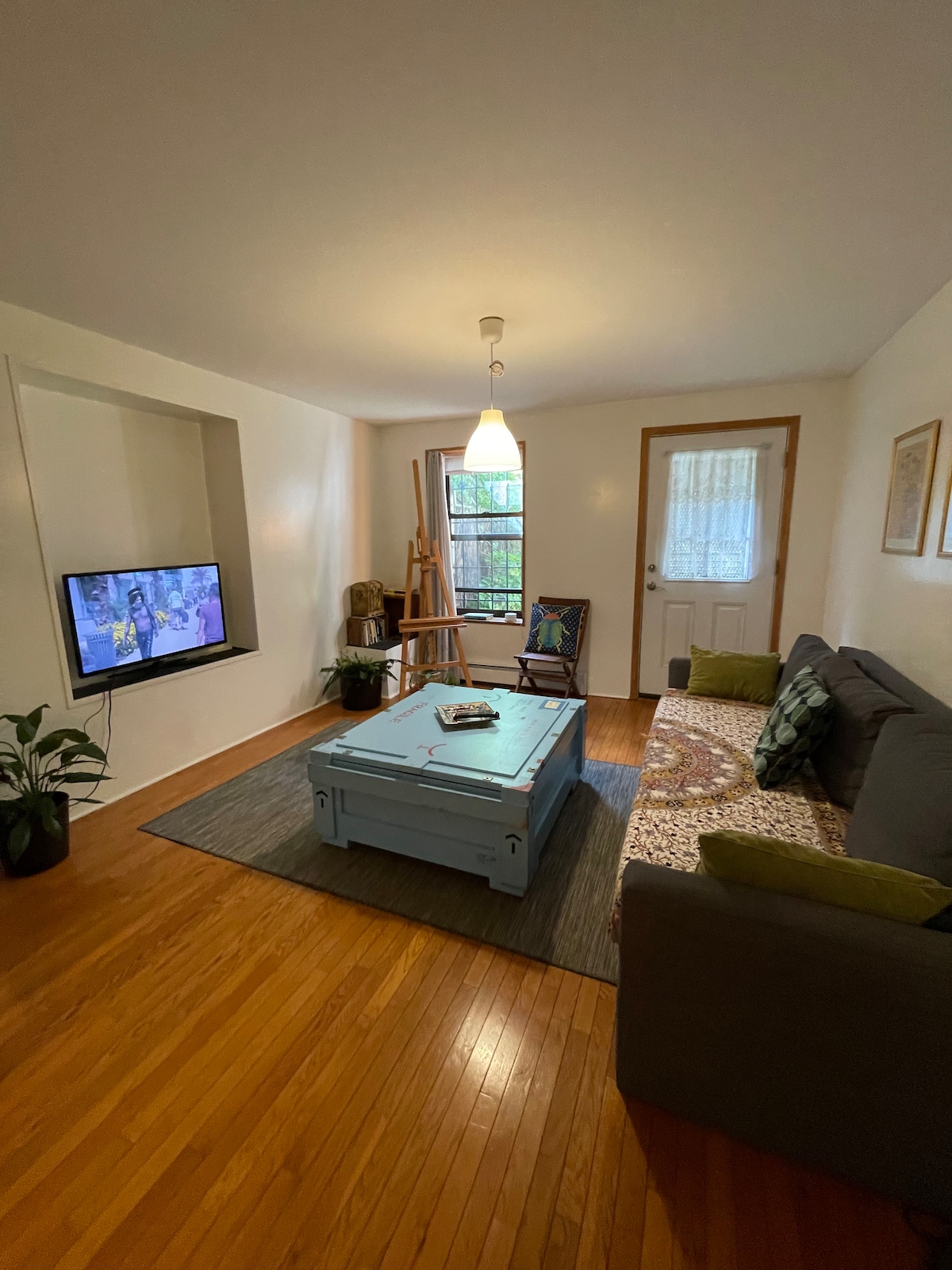 Our new 2bedroom apartment in Bedford-Stuyvesant, perfect for accommodating up to 7 guests. This space is an open-concept living room with a futon and sofabed, seamlessly connected to an open island full kitchen equipped with stainless steel appliances. Stay connected with high-speed Wi-Fi for your work-at-home needs and enjoy entertainment on our flat-screen Smart TV. The unit's design has Brooklyn old charm with exposed brick walls, high ceilings, and a neighborhood that complements the space.