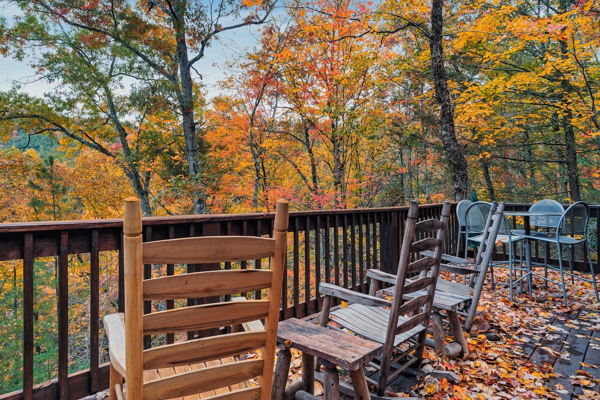 OVERVIEW: The cabin boasts 2 spacious bedrooms, each with a king size bed. Each room has it's own full bathroom, with a Jacuzzi tub in the upstairs bathroom. There is a sleeper sofa downstairs in the main living area. Both levels of the cabin have mountain facing porches which boast gorgeous views of Mt LeConte and the Smoky Mountains and that view can be enjoyed in the rocking chairs or the hot tub. There are fireplaces on both floors that add extra warmth and charm. There is a dining area just off the kitchen where you can share a great meal with friends or family.