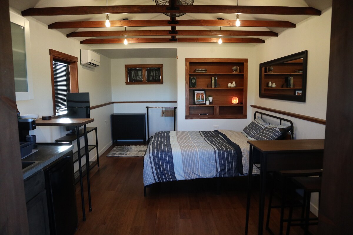 Come and experience one of Prescott’s most uniquely adorable tiny homes. A countryside guest home, on an idyllic plot, in the serenity of the vanilla scented Ponderosa pines. Minutes from downtown, nestled in the entrance to the Prescott National Forest. You will fall in love with the place because it is a sanctuary of curated art and design in the wilderness with a fun-loving spirit. The tiny home is perfect for solo adventurers, couples, creatives, and business travelers.