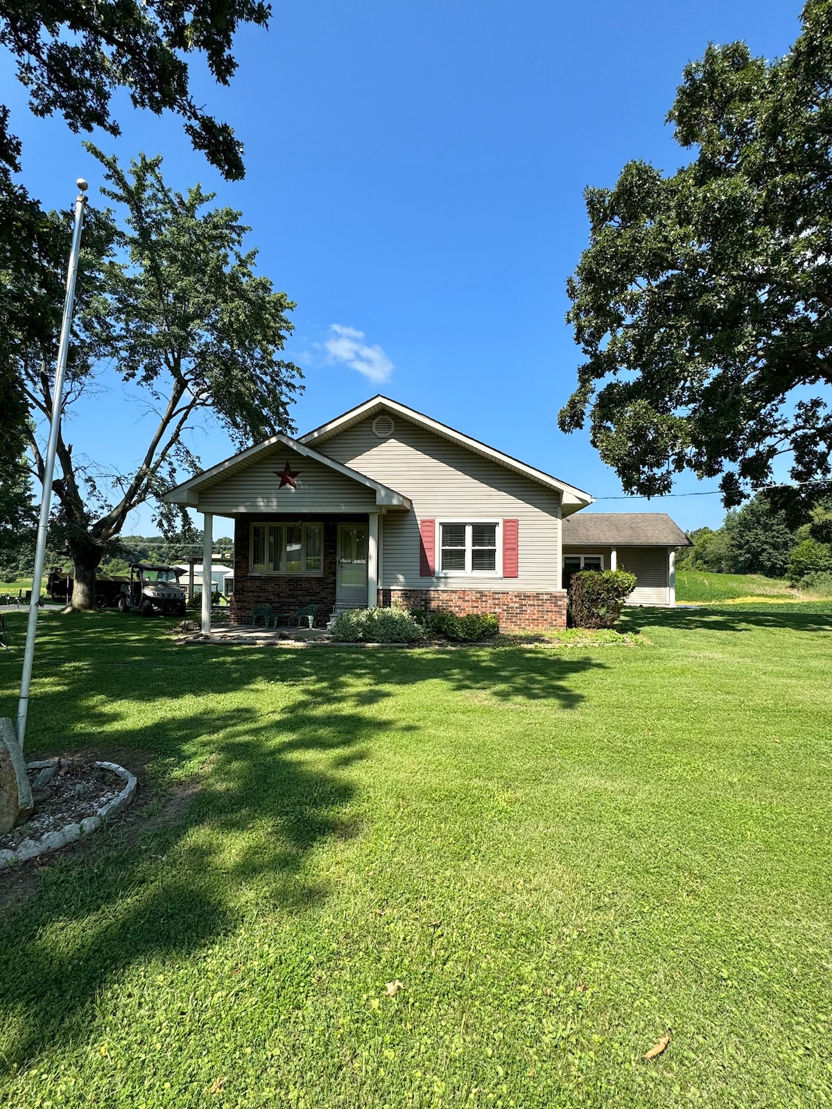 Relax in the country setting overlooking farmland while spotting the deer and foxes playing in the back yard. Enjoy quiet peaceful evenings while sitting on the patio watching the sun set. Just 1/4 mile away is the Lake Arrowhead walking trail. Enjoy a nature walk on the wooded trail. Enjoy home cook meals at the local family restaurant just 1.5 miles away. Plenty of yard for outside activities with plenty of shade from the giant oak tree. Just 7 miles from the new Marion Spirts Complex.