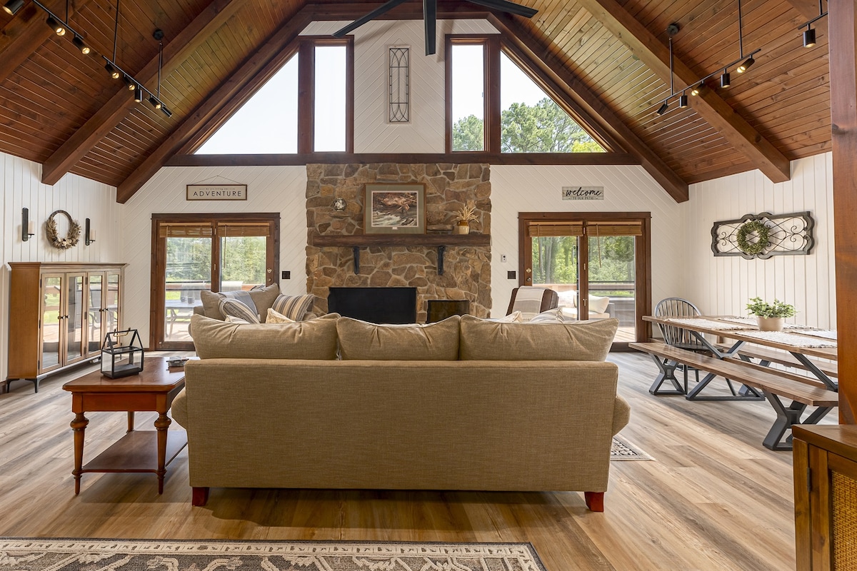 Unwind on 2 wooded acres in a cozy pole barn home with charming cottage-style interiors. Rock on the deck just off the master bedroom, swing on the front porch, or enjoy breakfast with a view from a table in the back. Nestled in the heart of Shawnee National Forest, it’s perfect for families, couples, or a small group of friends —just minutes from hiking trails, wineries, distilleries, and outdoor adventures everyone will love.