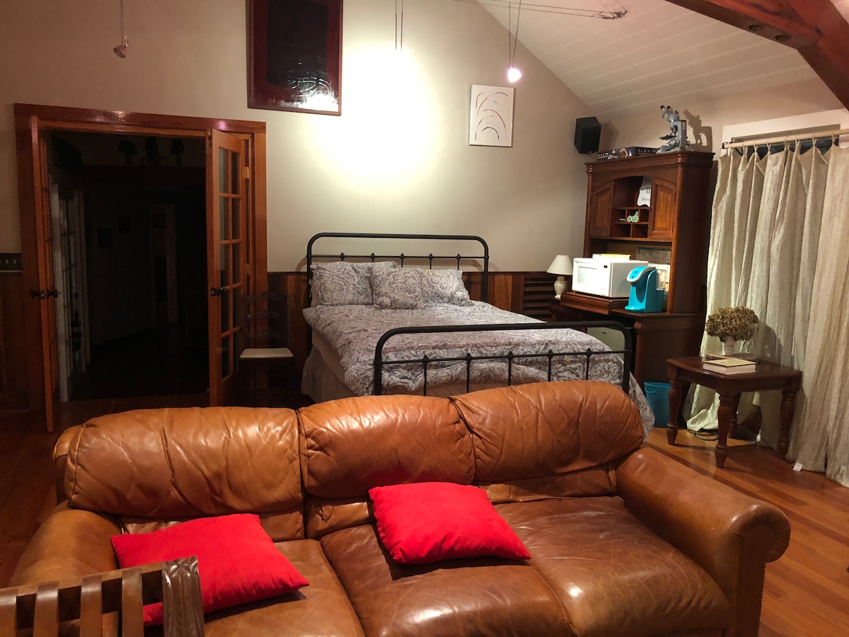Welcome to The Gatehouse, and the private world of Dark Horse Estate. A perfect setting for friends and families to unplug. This residence can accommodate three overnight guests. The Gatehouse features a queen bed and a day bed. It boasts a fully equipped kitchen, private bathroom and a huge, covered porch looking out over the countryside. The Gatehouse is exclusively yours and can be accessed with an outside entrance. This romantic one-of-a-kind get-away will exceed your expectations.