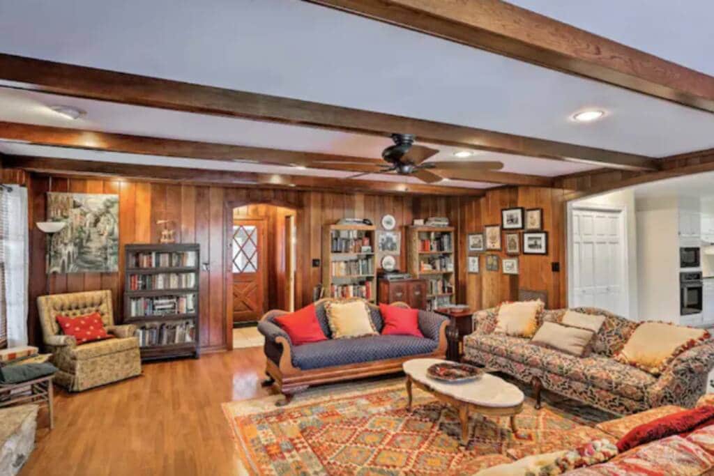 Welcome to Leiper's Fork Luxe a Hillsboro Hideaway in Franklin, Tennessee where cowboy charm meets modern luxury! Perfect for families, parties, or a weekend escape, this stylish retreat features a cozy living area, swanky game room with pool table, and a kid-friendly bunk room with five twin beds. Rich leather, vintage Western décor, and designer touches create an unforgettable stay. Relax, entertain, and enjoy the luxe cowboy life!