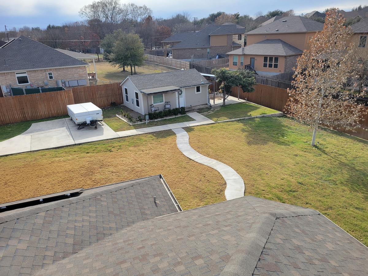 Located in a quiet neighborhood in Round Rock, this entire guest house is comfortable & centrally-located. Use it as a launchpad for exploring Central TX from downtown, Dell Diamond, the Round Rock Sports Multiplex and Kalahari Resort - just 25 minutes from Downtown Austin. The guest house shares the property with our home so we’ll be close by should you need anything. Please note: The kitchen does not have an oven. Salt and Pepper are provided but no cooking oil, coffee or other food items