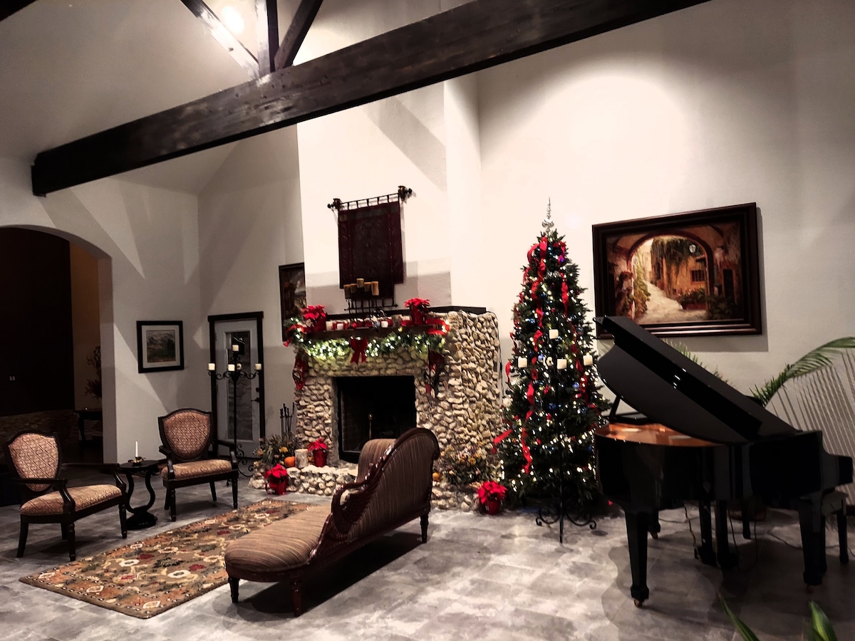 The 6,000 square foot home has 3 living areas, and covered porches where you can dine alfresco and watch the sunsets. The Great room with fireplace is where we host an option The large game room has leather couches a big screen T.V. with Amazon Fire access, a Foosball table, and some fun old fashioned games. It also has access to the upper balconies. Although Airbnb has our kitchen listed as available, IT IS NOT AVAILABLE FOR GUEST USE. Guests are greeted personally.