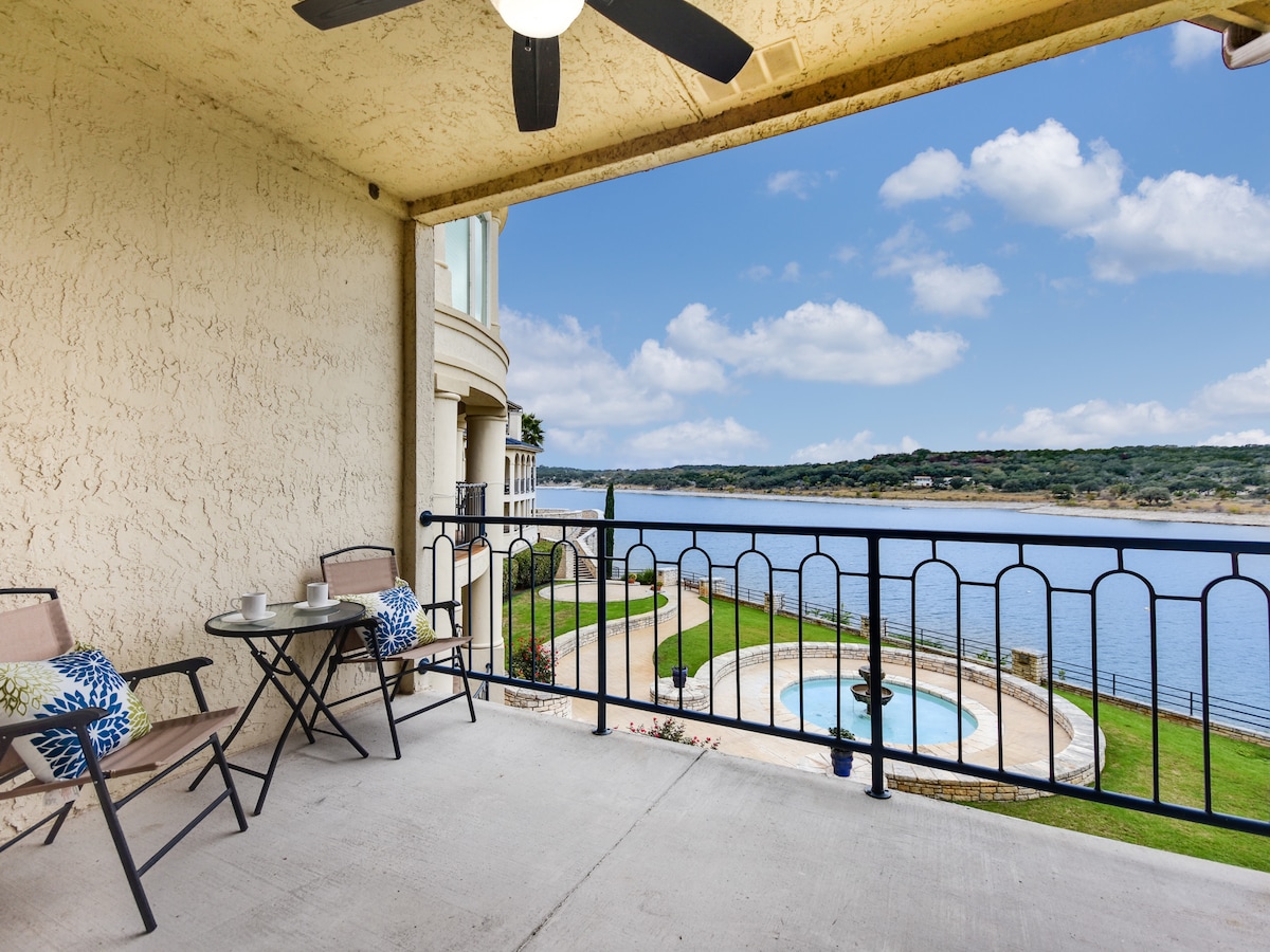Welcome to the Bella Lago condo on the Island of Lake Travis! An elegant, gated resort offering luxurious Lake Travis waterfront accommodations on a 14-acre island. It’s the perfect spot for a relaxing romantic escape with breathtaking lake views. Enjoy a spacious balcony featuring an outdoor entertainment bar, cooler, TV, wine barrel bistro table, and electric grill, all while taking in stunning views of the hill country. Due to recent rain, we now also have a lake view from our patio.