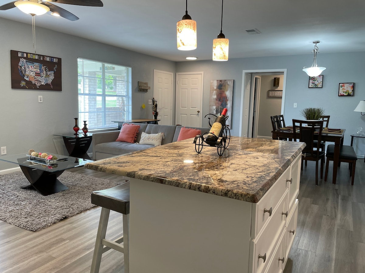 Newly renovated home in quiet cul-de-sac 19 minutes from downtown. Each bedroom has a bathroom and walk in closet. Master bedroom has a California King and second bedroom has a Queen. Both bedrooms are on the second floor. We have a roll in bed in the garage as well as a large couch that can be used for the 5th and 6th guest. Only guests are permitted. No extra visitors, parties or events. Violations may result in cancellation without refund. Neighborhood quiet hours are 10pm to 8am.