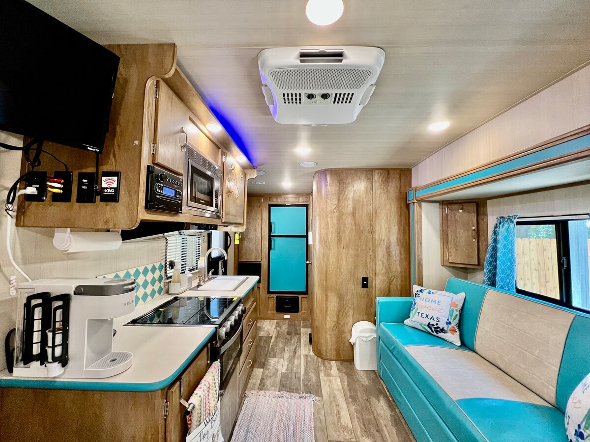 Stay in the heart of Old Town Leander's entertainment district in a state-of-the-art Pottery Barn Airstream! Located at Wildfire Park, this beauty is 1 of 4 airstreams BnB's available! Right outside your door is some of the best food in Leander - 3 food trucks offering BBQ, Venezuelan Street Food, Breakfast Tacos, an Ice cream Truck, and some of the best coffee you will ever try! The Pottery Barn has 1 Qn Bedrm, 1 oversized twin bed, and a comfy sofa to sleep on. Beautiful Bath & Kitchen!