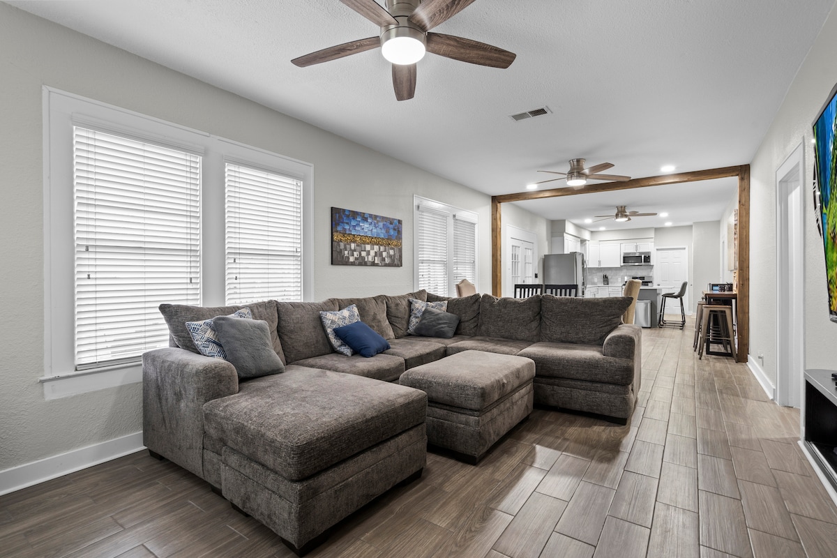 ✨Timeless-Texas-Inn✨ • An Expansive backyard now with Mini⛳Golf! - 🔥Heated Pool 🌊 - BBQ & a ton of games for ultimate Texan fun! • At night, the backyard glows with café lights -🔥fire pits - & a stunning gazebo, radiating TIMELESS décor & charm. • NEW MOVIE 🎦THEATER🍿ROOM - 🎮Game room - 🎱Pool table - 🎯Darts - Arcades & Board games - creating the ideal space for groups to make lasting memories in a picture-perfect setting! • 8min to KALAHARI • 12min to Domain • 20min to AUSTIN 🎸🎶