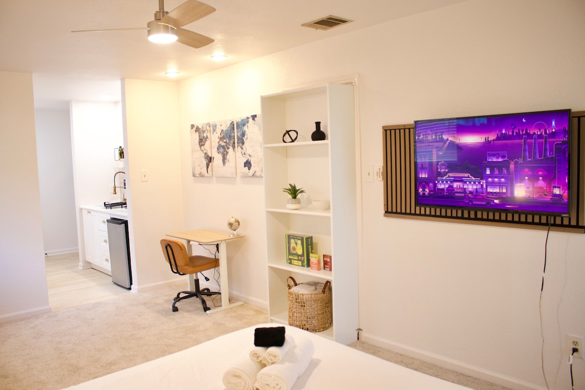 Welcome to Round Rock Texas! • Bright and modern private studio in the heart of Round Rock • Located just 7 minutes drive from Kalahari Resort and Dell Diamond Stadium • 6 minutes drive to Downtown Round Rock • 29 minutes drive to Downtown Austin • Near Heb Market, Tesla Supercharger, Round Rock Outlets and IKEA • Close to Old Settlers park • Ideal for couples, solo travelers, remote workers, and tournament stays.