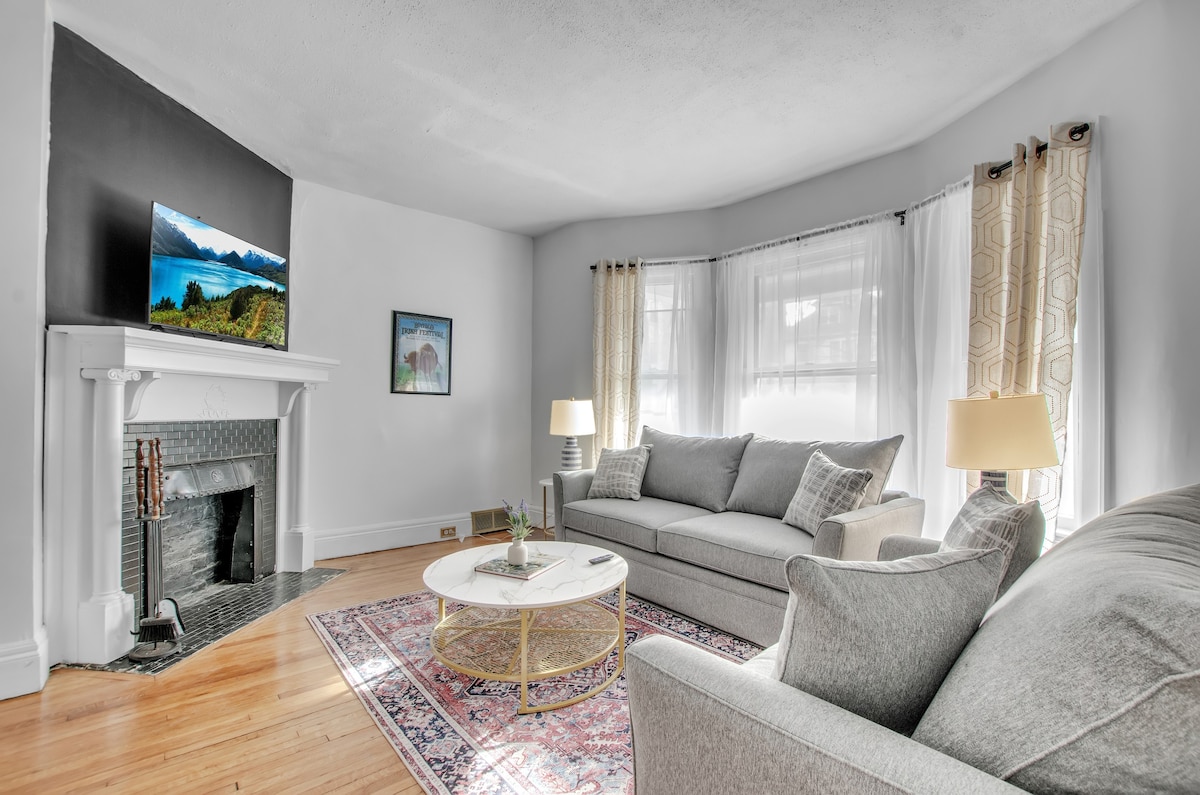 Enjoy all the comforts of home in every season at our 4 bed, 2 bath, 2200 sq ft home — with historical charm. Featuring stunning century-old woodwork, the open layout includes a fully equipped kitchen, cozy living & dining areas, a peaceful zen room, office, welcoming foyer & large yard perfect year-round. Upstairs, four spacious bedrooms offer a relaxing retreat. Just 7 minutes to downtown & 15 minutes from the airport, events. Be our guest & feel at home in any season.