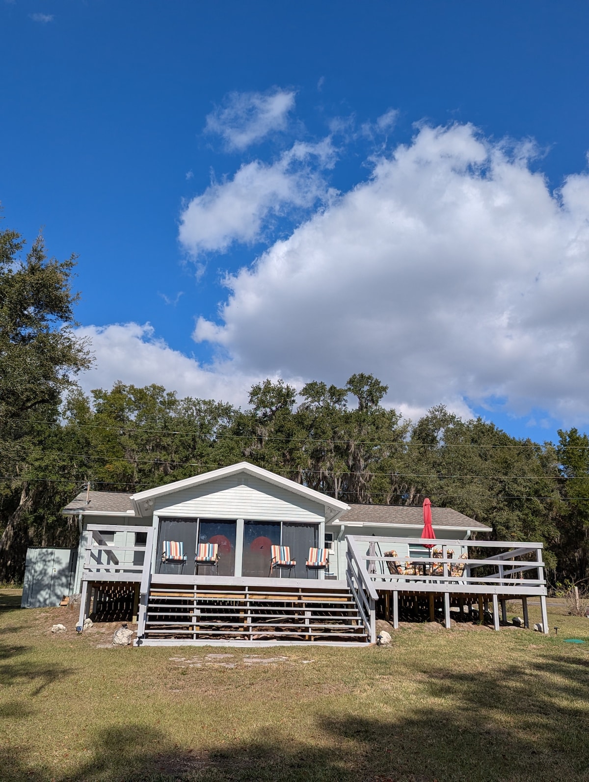 This cozy two-bedroom, one bath is a pet friendly property on a large private lot just north of Williston, Fl. Located just 25 minutes from Gainesville and 30 minutes from Ocala making it a prefect stay for events at the University of Florida, equestrian events at Horses in the Sun or diving at Devils Den. This hidden gem is also a great place for those just looking to relax away from the hustle and bustle. Enjoy this peaceful retreat nestled amongst the privacy of sprawling oaks.