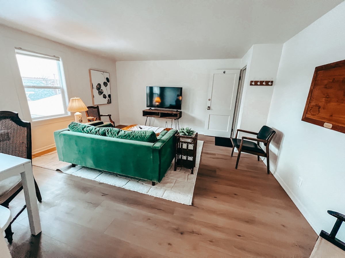 Open studio apartment located in the heart of downtown Williston, above The Fleur Cafe. This space is fully furnished with modern eclectic furnishings making it the perfect option for your short or long term stays.
