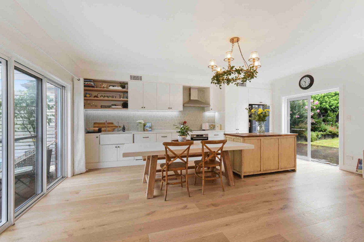 This self-contained guesthouse is part of a gracious federation family home on a corner block with its own private entrance. It has one bedroom with a built in wardrobe and desk. The Living area is a combined living/dining and kitchenette leading to a large outside verandah/deck. The space is flexible and perfect for business travellers, young families and couples looking to enjoy the best parts of Sydney. We have an air mattress and crib, which we’ll include or remove based on your sleeping requirements. You’ll feel just like you’re at home away from home!