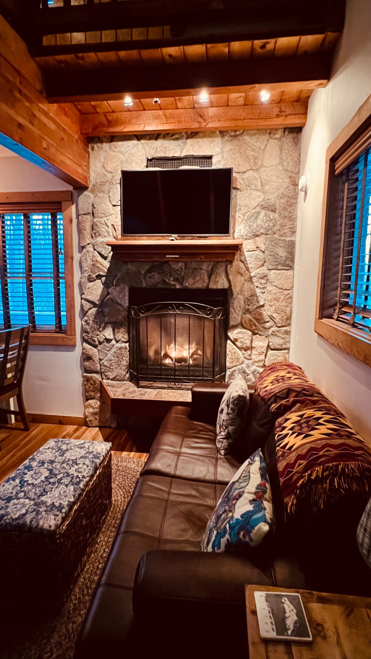 Nestled in the trees & a five minute easy trail-walk to town through the Birch Trees, (AFTER the snow melts), this cozy rustic-modern music-themed cabin feels remote yet close to town and a short stroll to the river to see Denali. There is a fully appointed kitchen, coffee, & tea & condiments with everything you need for cooking & a cozy gas fireplace for warming your feet by the fire. I block the adjoining cabin for your privacy but message me to rent both!