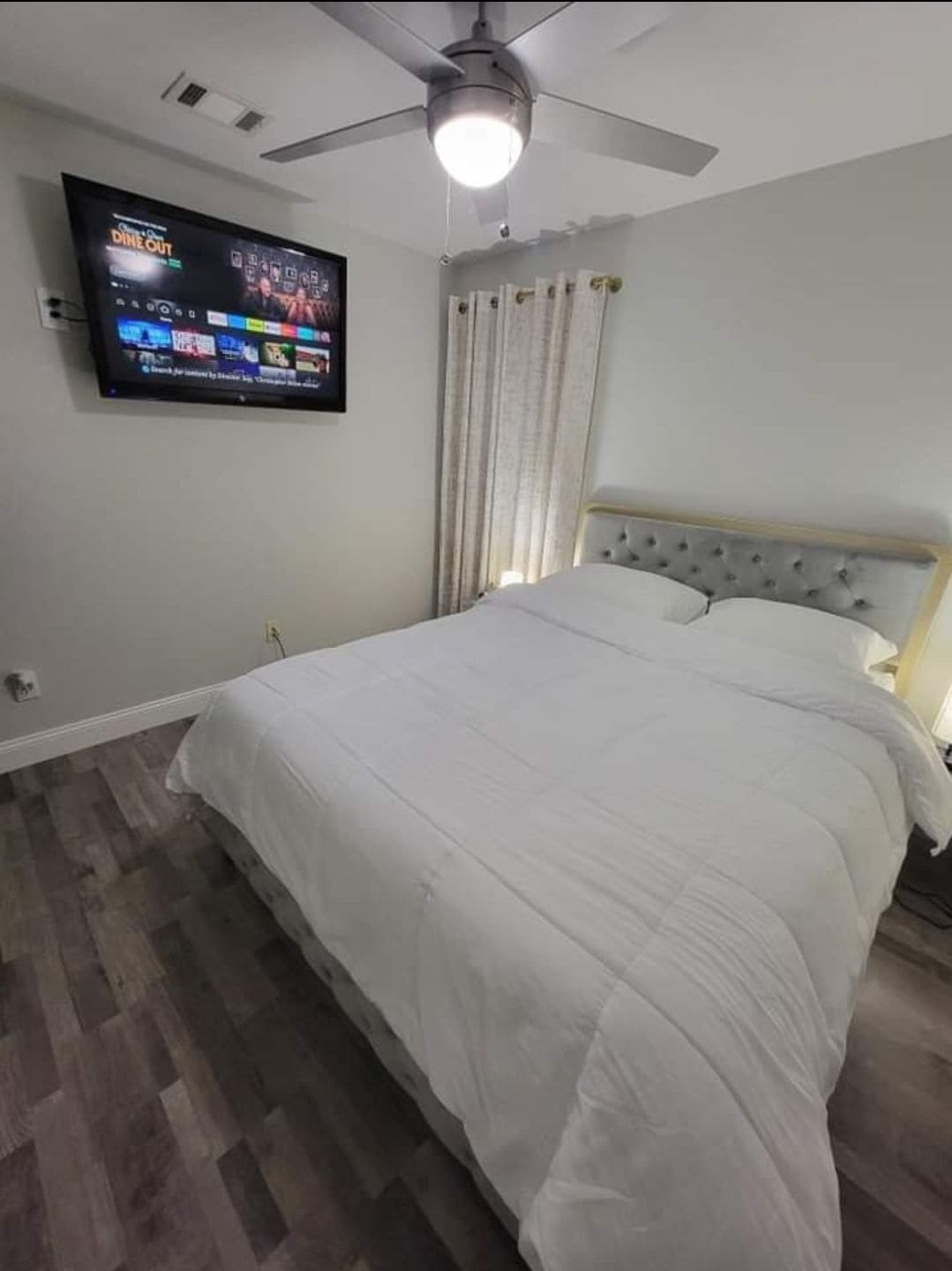 The Beautiful Home is equipped with central air and heating, a washer, dryer, refrigerator, dishwasher, and stove top for cooking. It also features two 65-inch , 50-inch televisions, as well as a 30-inch television. Cable spectrum free The home has two restrooms and two bedrooms. The master bedroom includes a king-size bed, a guest queen-size bed, and a pull-out sofa bed. The house is protected by ADT security, and there is a doorbell camera at the entrance and a smart lock for self entry.