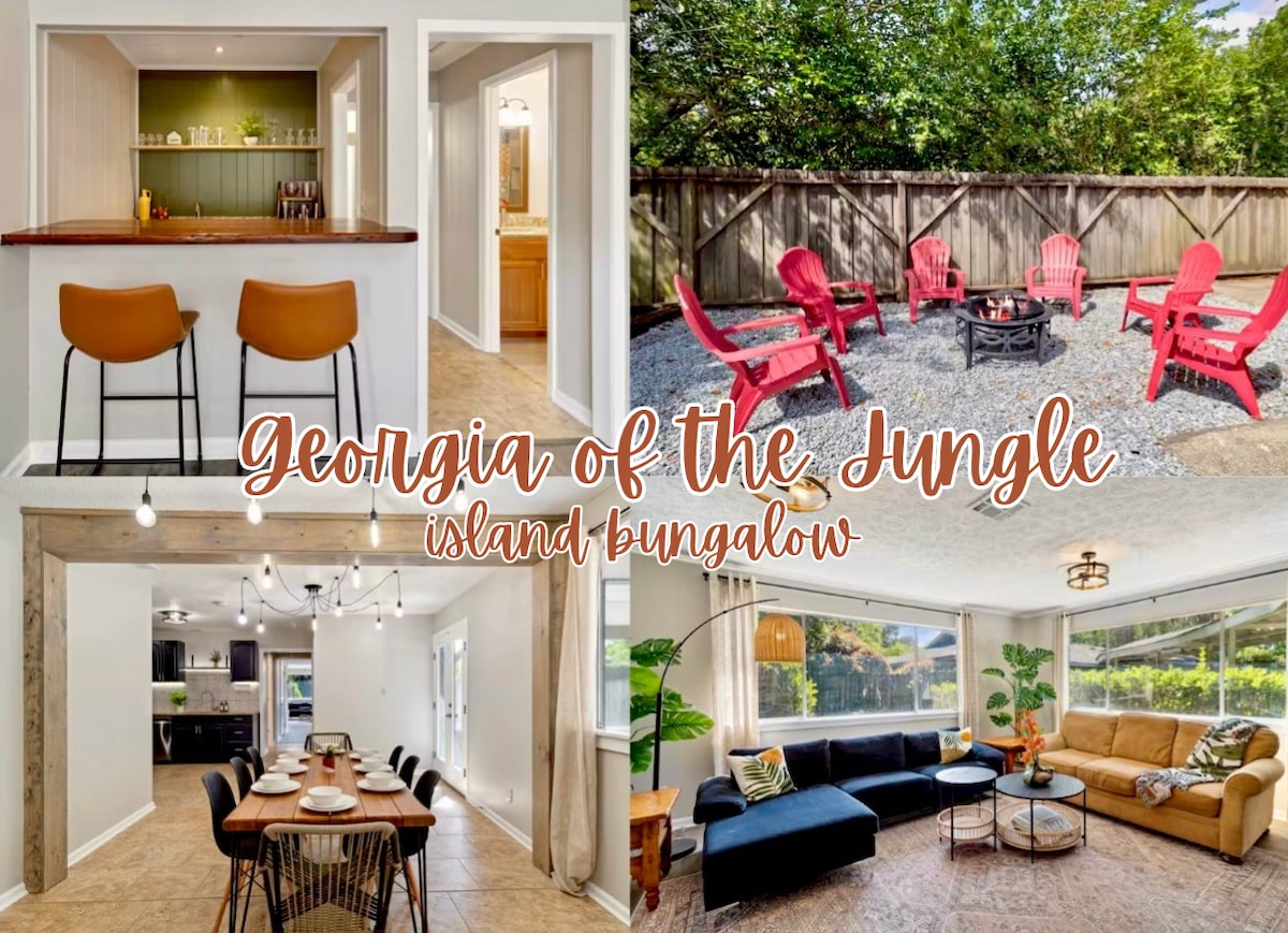 Our private bungalow, centrally located between downtown Savannah and Tybee Island beach is the perfect spot to host your bachelorette weekend or family vacation. A peaceful master suite featuring a tiled shower and king bed is the perfect spot to relax. The velvet room with queen bed, vanity and midcentury decor has a gold bar cart for mixing late night cocktails. Four twin bunks line the third bedroom which leads out to the private fenced in yard with a brand new pool and patio. OTC-023474
