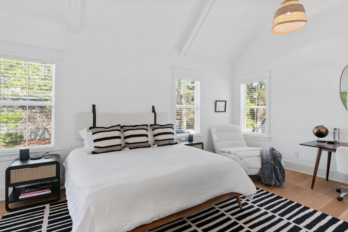 A classic 1946 duplex cottage on the outside, reimagined as a modern coastal retreat on the inside, The Bungalow Loft blends timeless charm with contemporary comfort. This thoughtfully designed space features one bedroom, two additional daybeds in the living area, a full bathroom, a well-equipped kitchen, and a cozy dining nook. Step outside to enjoy expansive outdoor living, complete with a front porch, spacious deck, fire pit, and refreshing outdoor shower.
