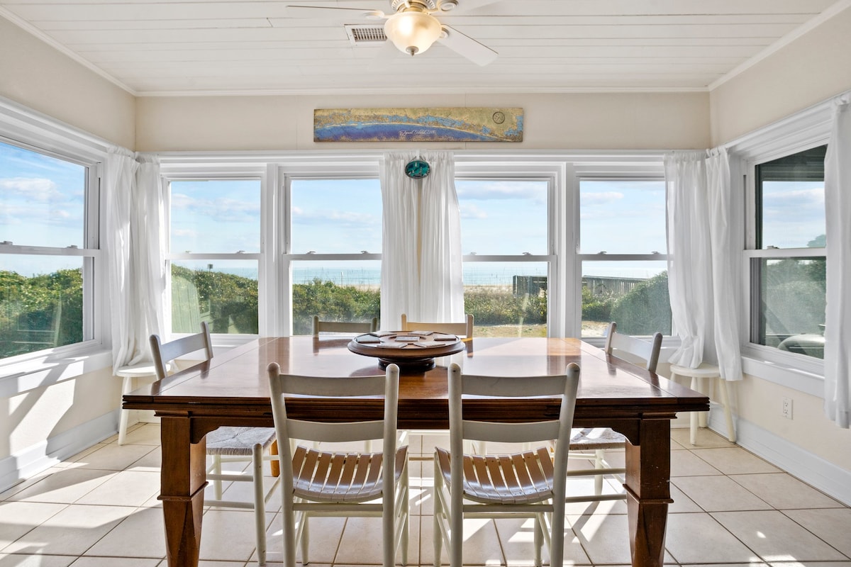 Welcome to "The Boys of Summer Rental" ! Enjoy miles of unobstructed ocean views and a sandy beach right in your backyard. Relax on the huge covered porch with ocean breeze, watch dolphins, or boats pass by. The fully fenced yard is perfect for kids and pets. Just a 6-minute walk to restaurants, shops, and grocery. Plus, you have direct beach access for endless coastal fun!