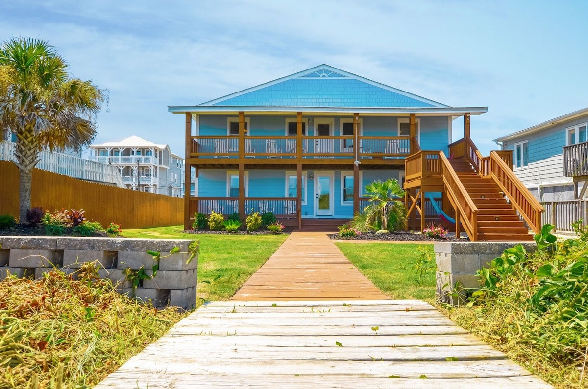 Enjoy this vacation spot that is right on Carolina Beach. Ebb Tide is just steps from the sand with your own private walkway and deck overlooking the sea. Ebb Tide is a perfect oceanfront spot to leave your daily life behind. You can’t beat the views. The house features an open floor plan, 4 bedrooms and 2 bathrooms on a quiet street but only a short walk to the Boardwalk. Our all-inclusive package includes rent, linens with beds made, and bath towels.