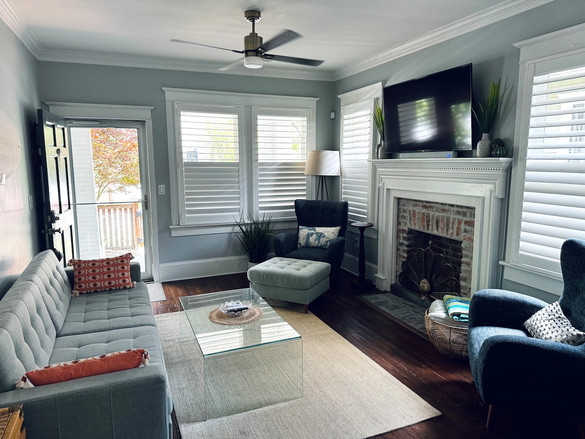 A Chic and Seaside-esque Getaway! This home was newly redone (w/love) in a quaint neighborhood near downtown and a short drive to the beach. 3 brs w/ an open floor plan, great for gathering & entertaining! A private backyard with a grill & firepit. Large front porch with cozy seating. Spacious couch for relaxing; open area for kids upstairs. 1 mile from the heart of downtown and Riverwalk. Explore historic downtown Wilm shopping, coffee, restaurants, antiquing or pack up for a day at the beach!