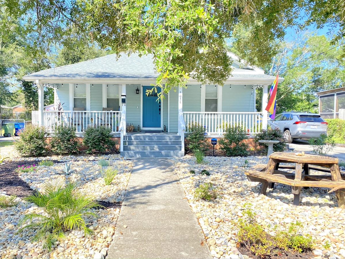 Keep it simple at this comfortable and centrally-located space. We are located within city limits,2miles from downtown 20 min to beaches. Restaurants and bars within walking distance. Short walk to a minimart and the Greenfield Lake amphitheater. You will have a beautiful view of greenfield lake from the front porch.There is also large back porch and yard.This space is great for a couple or small family and is a great space for Remote working. (Not toddler friendly) Have a happy adventure!!