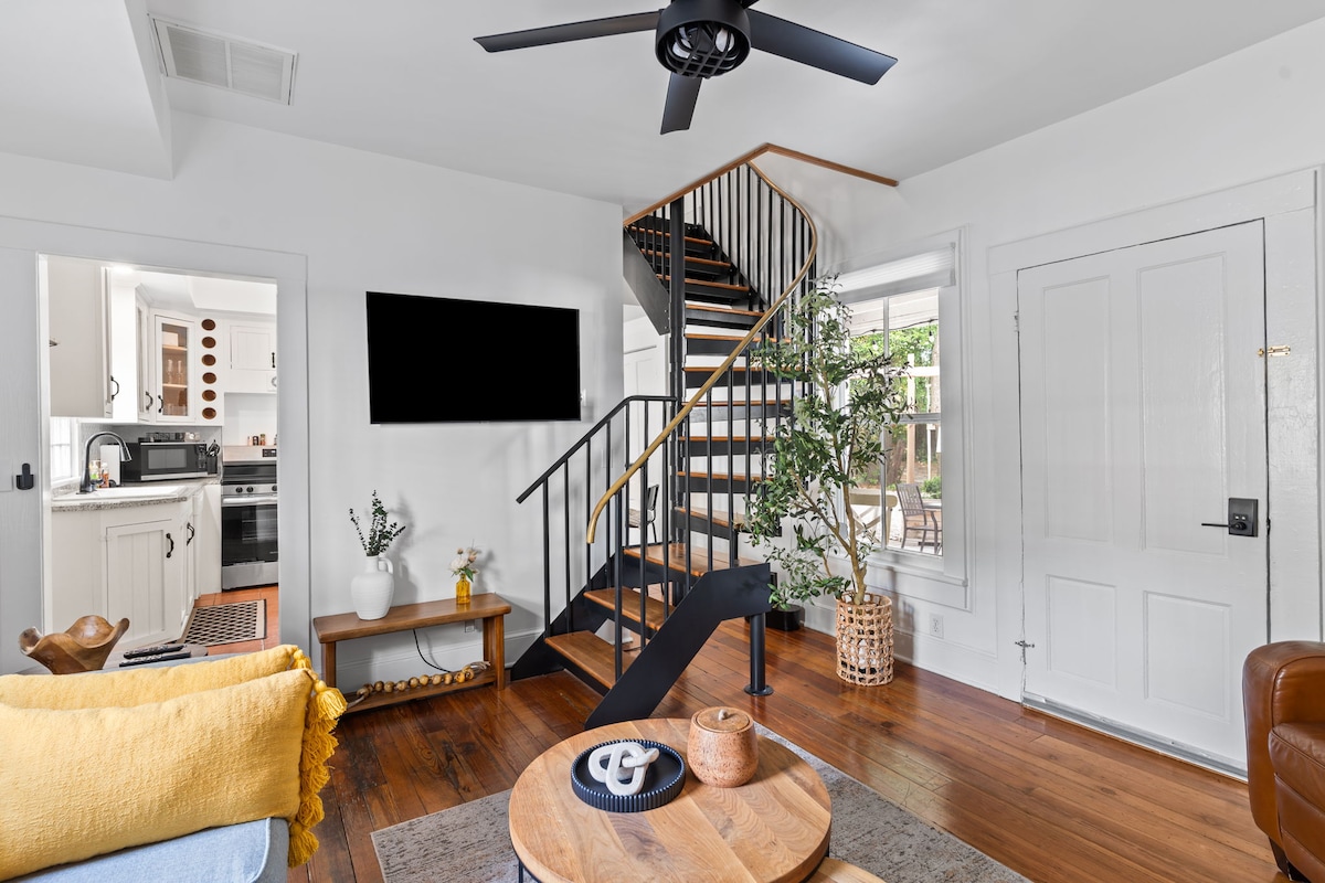Enjoy a unique historic loft stay with a spiral staircase, free private parking, and an easy walk to Wilmington’s Riverwalk, restaurants, bars, shops, and nightlife. The Downtown Loft features a full kitchen, in-unit washer and dryer, and a distinctive 2-story layout that feels far more memorable than a standard one-bedroom stay. Ideal for couples, solo travelers, or traveling professionals who want character, convenience, and a true downtown experience.